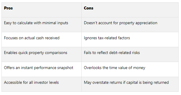 Useful for quick comparisons: It allows investors to easily compare the cash performance of different properties, especially in fast-moving markets.