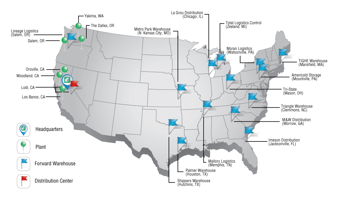 Modern distribution facilities in infill and key transport nodes (port, intermodal, and major population corridors).