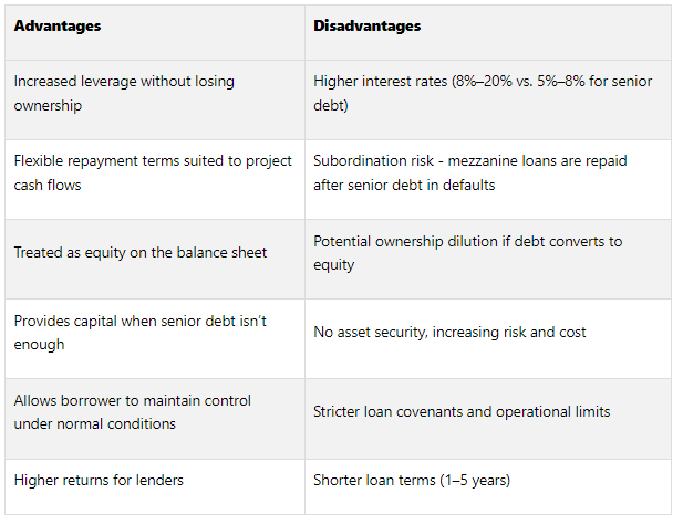 Pros and Cons of Mezzanine Financing