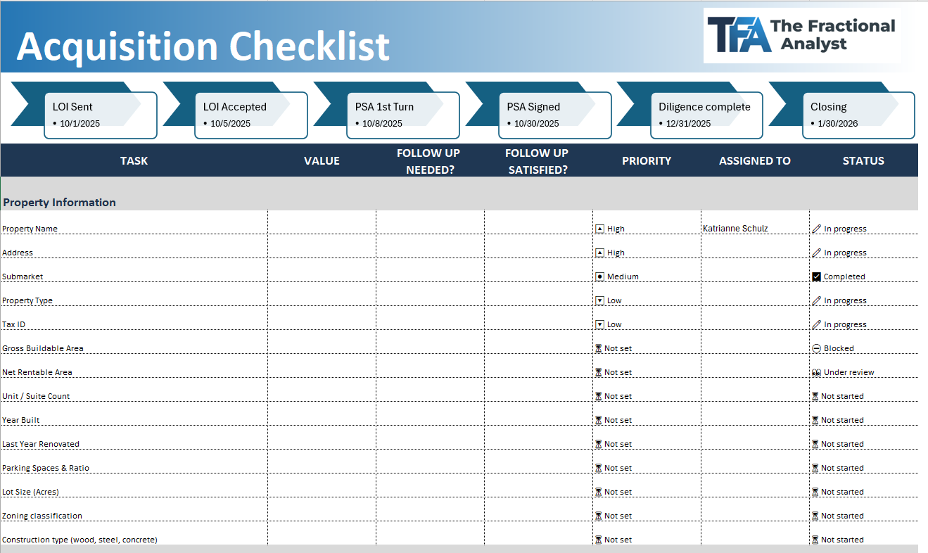 Real Estate Acquisition Checklist – Ensure diligence is complete from sourcing to close